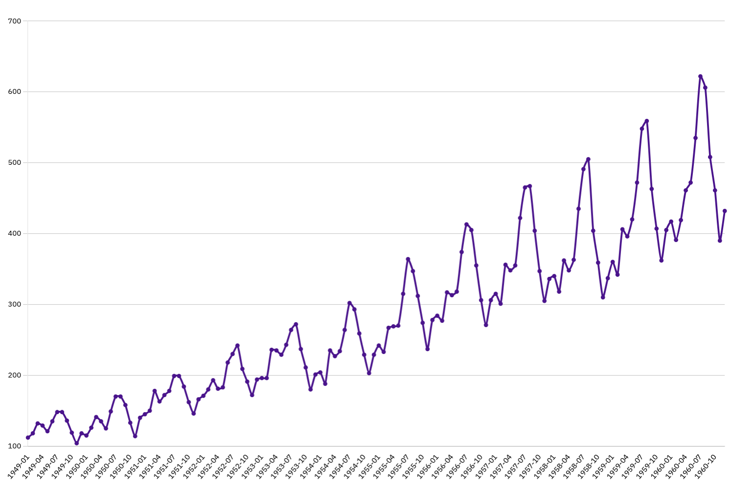 A time series shows how a value changes over time, typically displayed as a sequence of data points on a line chart.